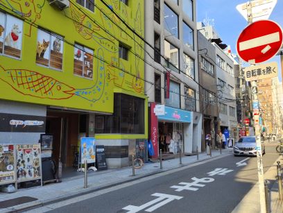 三角公園前の旧店舗から北へ1本目を右へ曲がる。 |