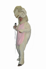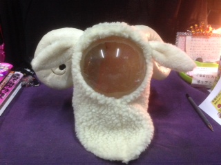 (羊のぬいぐるみを着用。胸にユニクロの文字)